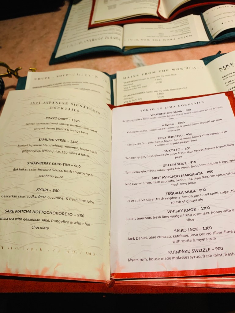 The menu offers Japanese-Peruvian cuisine, or rather Nikkei food. A small background on Nikkei cuisine – Nikkei cuisine was born in 1889 when Japanese farmers moved to Peru to work in sugar cane fields. Due to lack of their traditional ingredients, they began using Japanese cooking techniques with Peruvian ingredients they could find locally.