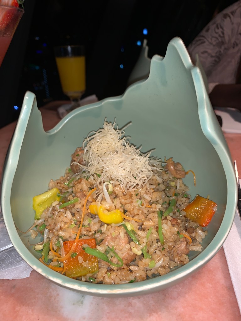 We both ordered chauffa nikkei (garlic stir fry with Japanese rice) to come with chicken . I wanted to try the sushi but my friend isn’t a fan and a whole plate would have been too much for me. But, I heard the sushi is to die for!